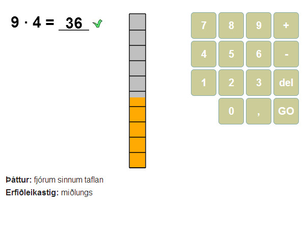 Nemandi velur margföldunartöflu til að þjálfa og reiknar svo í kappi við tímann. Súlan hækkar í hvert sinn sem útkoma nemanda er rétt en fellur við rétta útkomu ásamt því að hún fellur stöðugt með hverri sekúndu. Markmiðið er að ná súlunni alla leið upp.